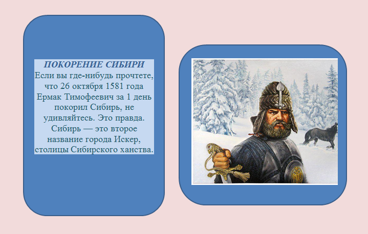 Друзья! Поздравляем вас с праздником нашей территории – с Днем Сибири, и предлагаем проверить свои знания о родном крае, став участниками викторины «Я – сибиряк!». Какой царь правил, когда Ермак начал освоение Сибири? а. Иван Грозный б. Александр I в. Александр II г. Петр I 2. Какой город стал первым из основанных русскими в Сибири? а. Красноярск б. Омск в. Тюм...