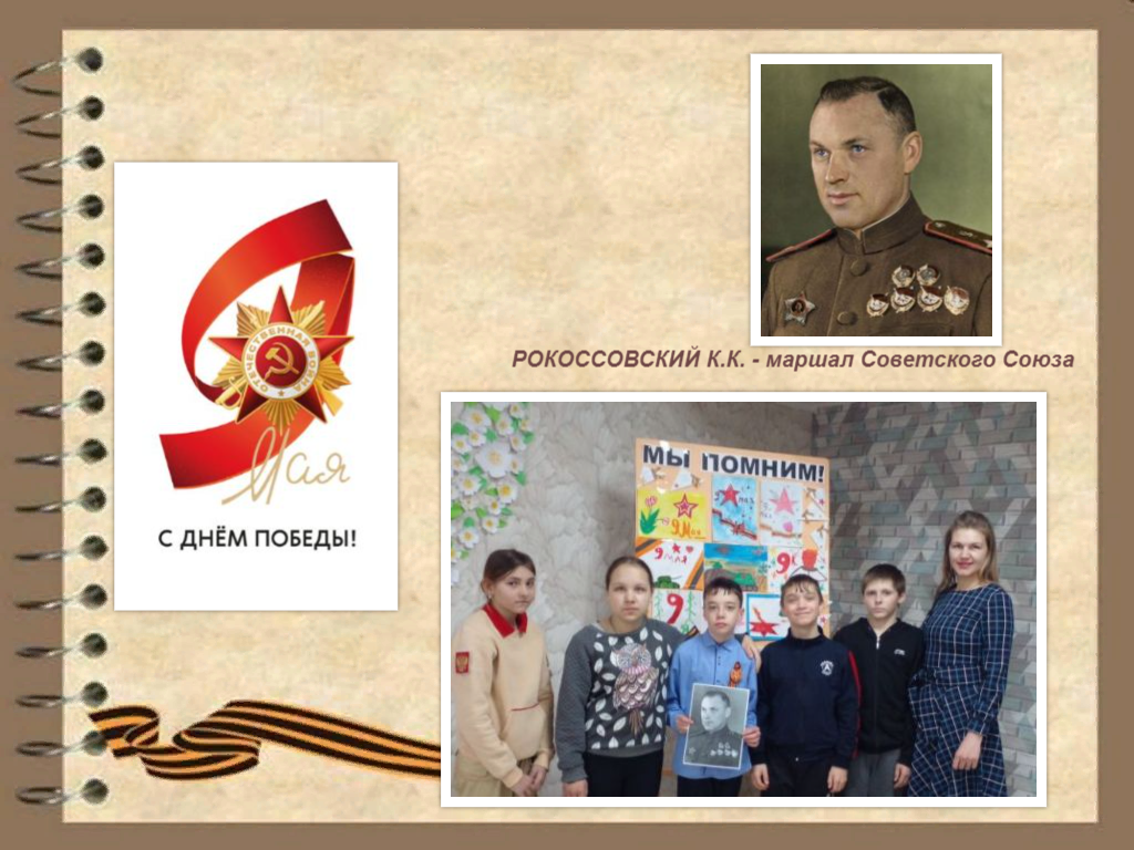 В преддверии праздника Великой Победы, специалистом отделения социальной помощи семье и детям КГБУ СО «КЦСОН «Тасеевский», 26 апреля, проведено очередное мероприятие из цикла «России великие сыны», посвященное маршалу Советского Союза Константину Константиновичу Рокоссовскому. Юные получатели социальных услуг узнали о том, что Рокоссовский и Жуков - маршалы, один из которых командовал...