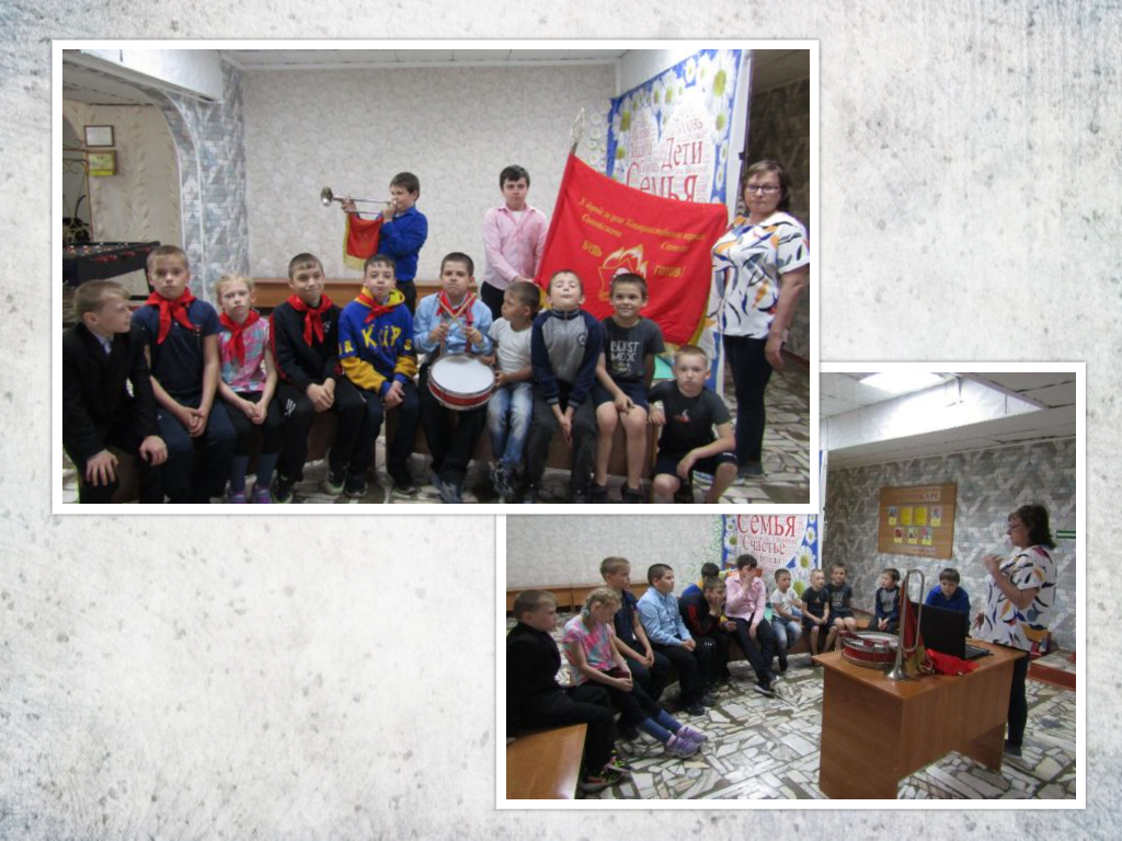 В рамках Всероссийской акции, посвящённой 100-летию со дня основания  Всесоюзной пионерской организации имени В.И. Ленина, с 12 мая по 20 мая прошли мероприятия для ребят, посещающих КГБУ СО «КЦСОН «Тасеевский». Во время проведения сборов специалисты  отделения социальной помощи семье и детям «окунули» ребят в страну пионерии. Во все времена пионеры Всесоюзной пионерской орг...