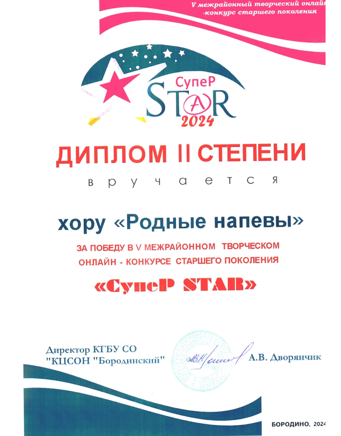 В марте в очередной раз в городе Бородино Красноярского края прошел пятый межрайонный творческий онлайн-конкурс для старшего поколения «Супер-STAR», посвященный  Году семьи. В нем приняли участие отдельные исполнители и творческие коллективы, являющиеся получателями социальных услуг краевых государственных учреждений социального обслуживания восточной группы районов в возрасте 55+. ...