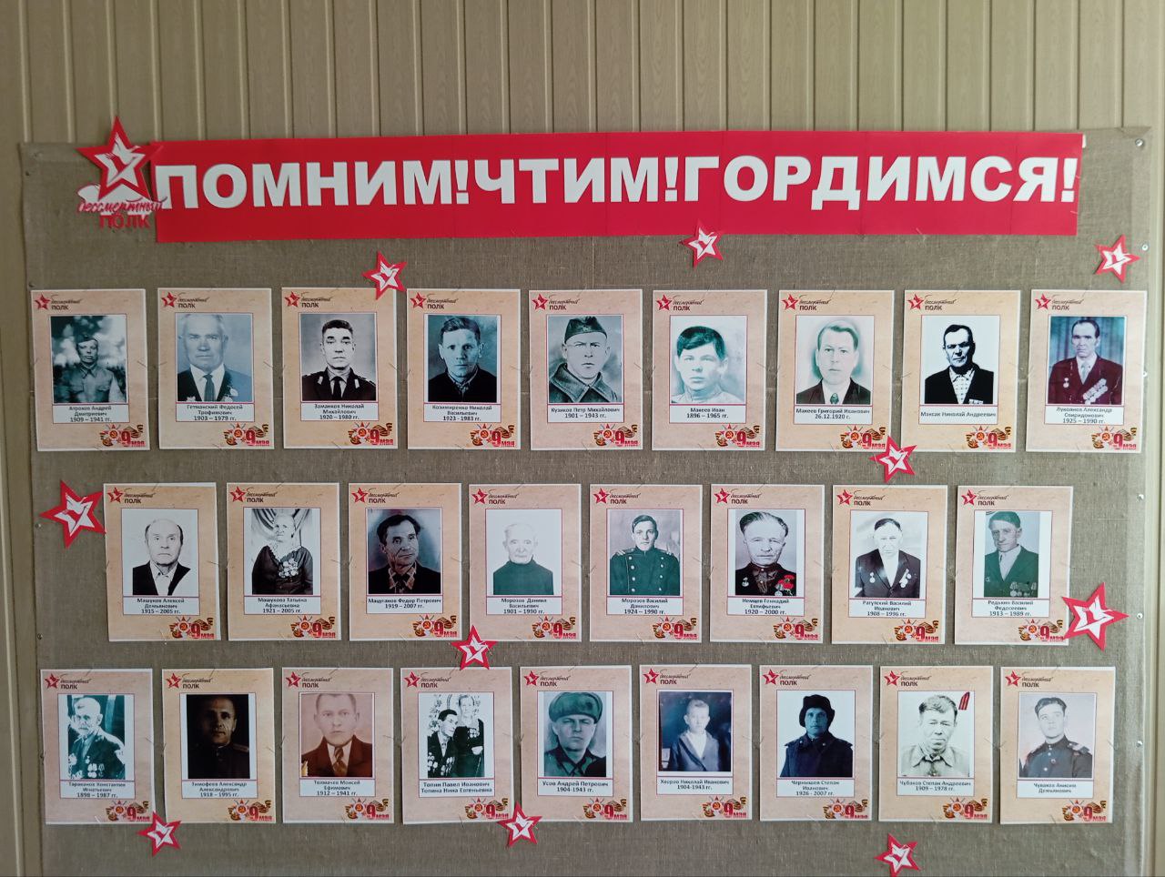Наш центр присоединился к Всероссийской акции «Бессмертный полк», которая проводится в честь 80 – летия Победы.  В фойе центра оформлен стенд «Стена памяти», на котором размещены фотографии отцов, дедов и прадедов – участников Великой Отечественной войны, наших  сотрудников и получателей социальных услуг. С пожелтевших от времени фотографий смотрят на нас люди, испытавшие вс...