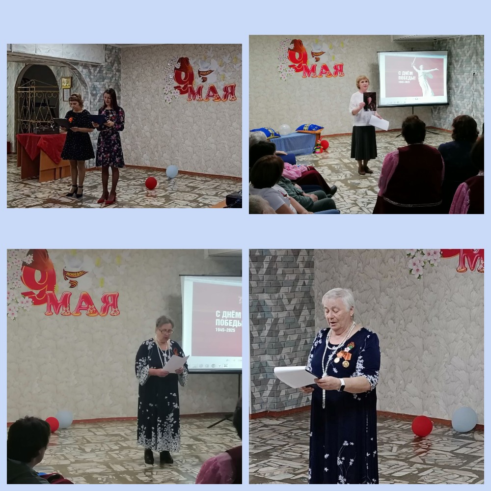 В преддверии Великого Дня Победы в нашем центре состоялась концертная программа «Нам не забыть Победный Май!». Всех присутствующих с 80-летием Победы поздравила заместитель директора Гелия Ахтямовна Войтюк, пожелав всем здоровья и мирного неба над головой. Председатель районного совета ветеранов Нелли Моисеевна Козлова в своем выступлении рассказала про земляков - тружеников тыла. ...