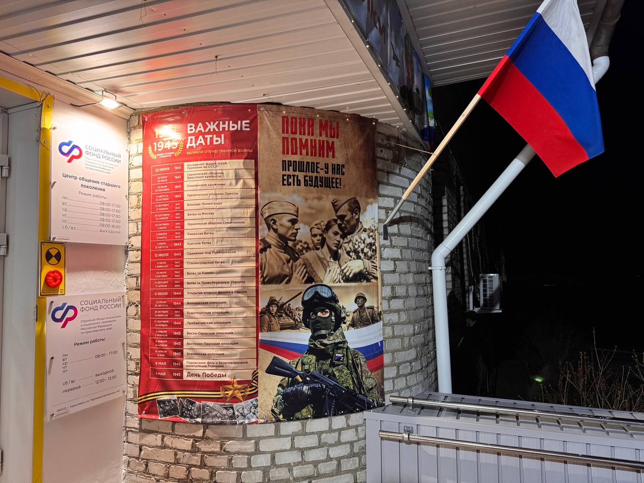 КГБУ СО «КЦСОН «Тасеевский» принимает участие во Всероссийском конкурсе по праздничному оформлению витрин и входных групп, приуроченного к 80-летней годовщины Победы в Великой Отечественной войне 1941-1945 годов в номинации «Витрина (входная группа) социального объекта». Красочное убранство входной зоны и окна учреждения преобразились благодаря флагам, ярким баннерам, рисункам и надпи...