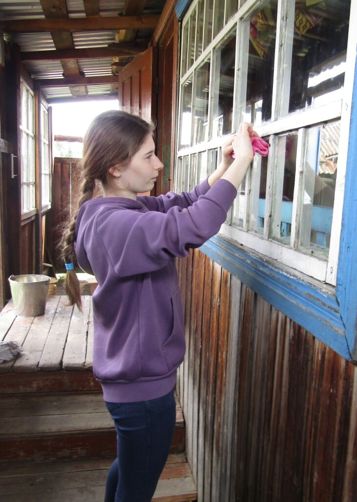 - Трудовой вектор – благоустройство придомой территории, побелка палисадника, деревьев, уборка мусора, травы, мытье окон, уборка и складирование дров, подготовка приусадебного участка к посадкам, помощь в дальнейшем уходе за приусадебным участком. Участие в субботниках;