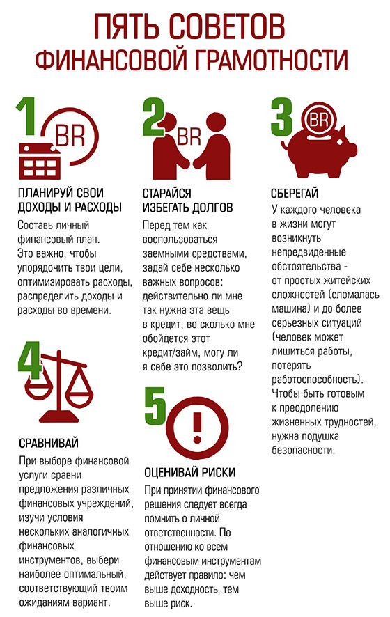 Памятка Пять советов финансовой грамотности