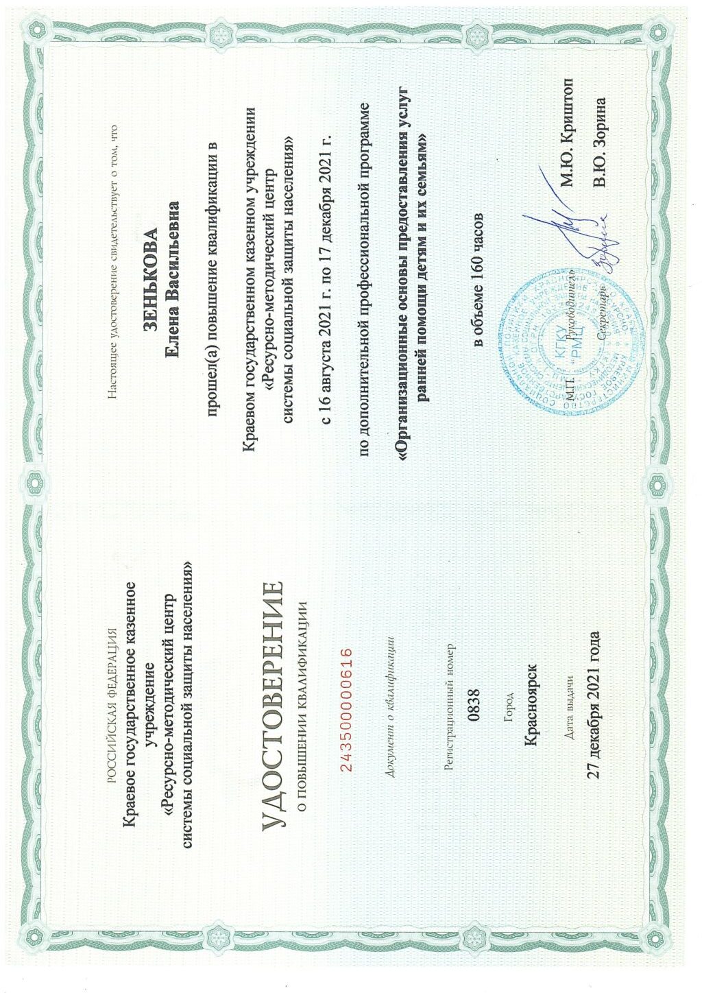 Зенькова Елена Васильевна