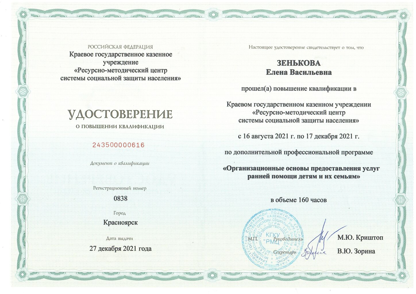 Зенькова Елена Васильевна